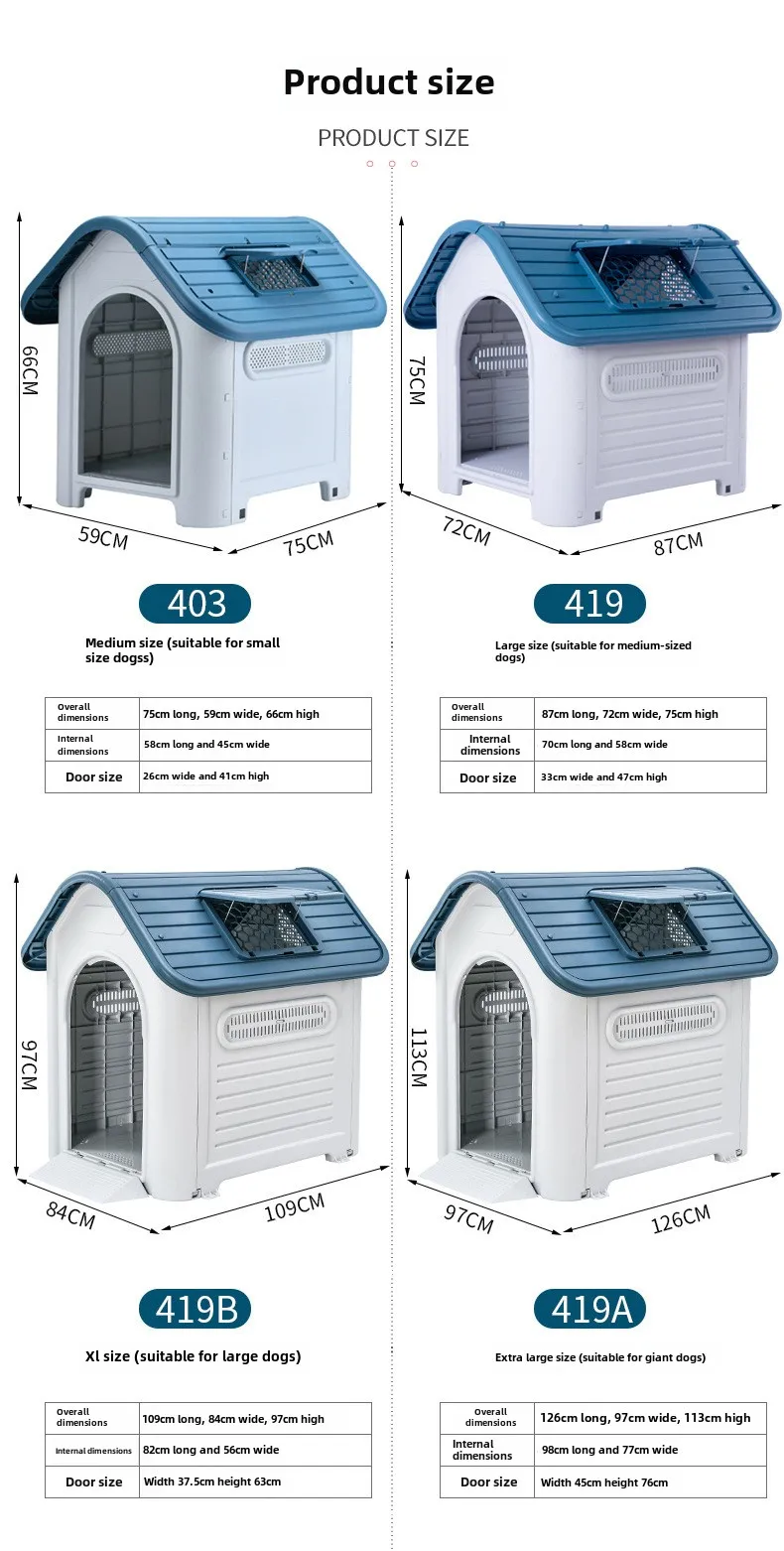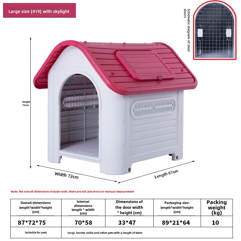 Full Season Outdoor Kennel House Waterproof Rain-Proof Plastic with Sunroof Multiple Options Solid Pattern