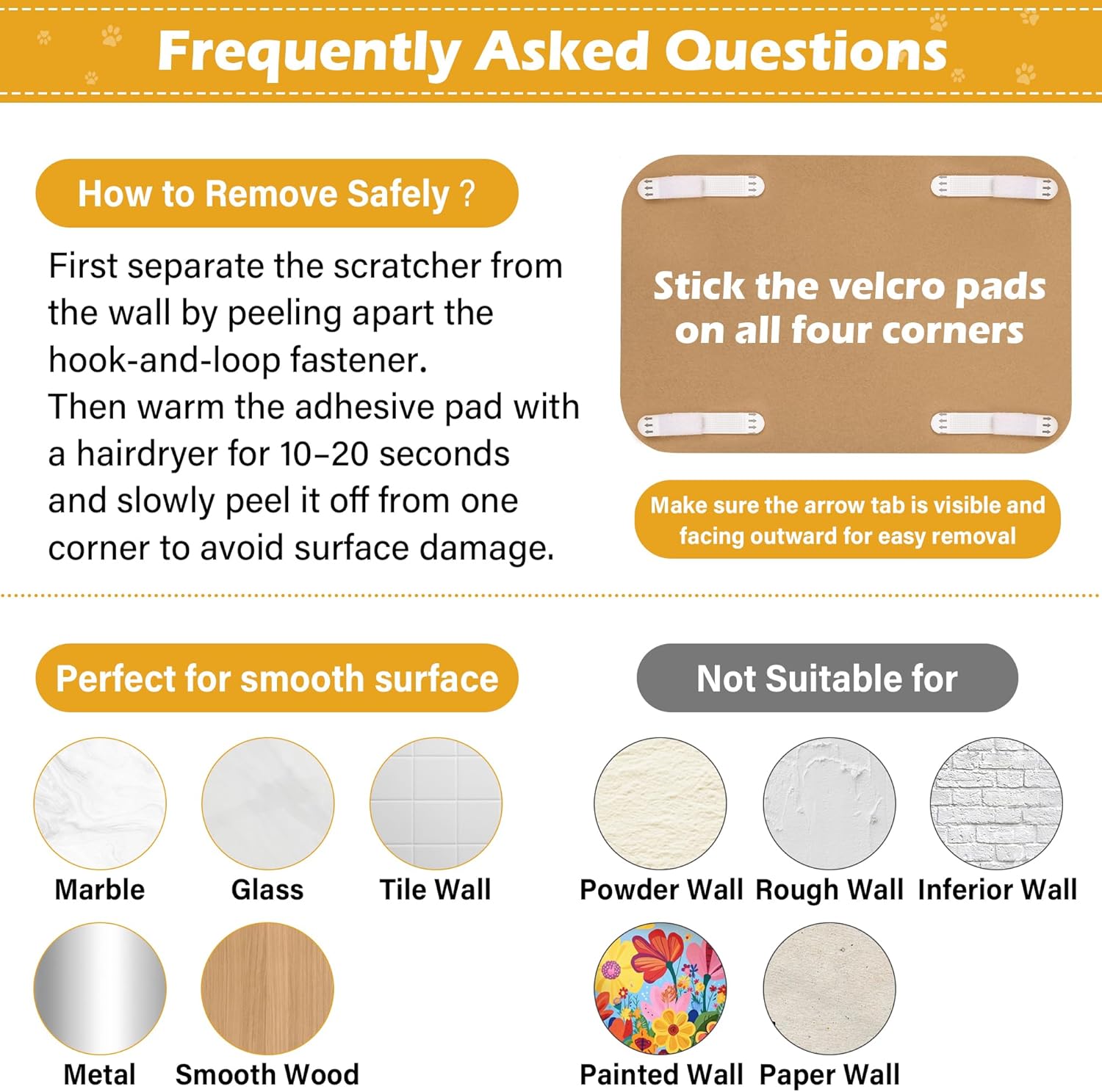 - NEW & Wall-Safe: We’ve upgraded to removable Velcro strips — a safer, cleaner solution. To remove, hold the mat and stretch the strip slowly along the wall surface — pull in the same direction as the adhesive strip, not away from the wall. This weakens the adhesive as it stretches, allowing for a clean, easy release