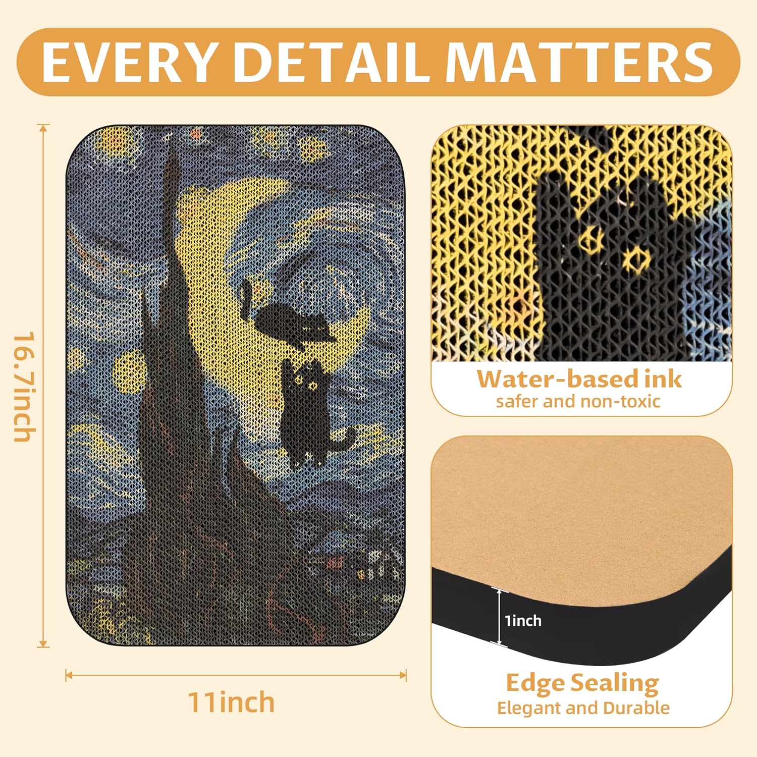 Art Cat Scratcher, Wall-Mountable Cat Scratching Board, Cat Wall Scratcher 16.7x11x1 Inch Cat Scratch Pad and Cat Scratchers for Indoor Cats Toy Furniture Protector(Starry Night)