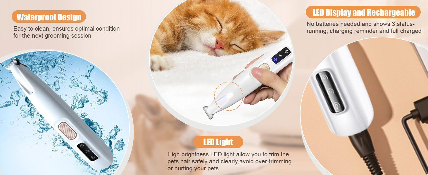 Dog Paw Trimmer,Furry Basics Pet Hair Trimmer,Saffory Dog Paw Trimmer with LED Light,Low Noise USB Rechargeable,Waterproof Pet Hair Shaver for Dogs and Cats