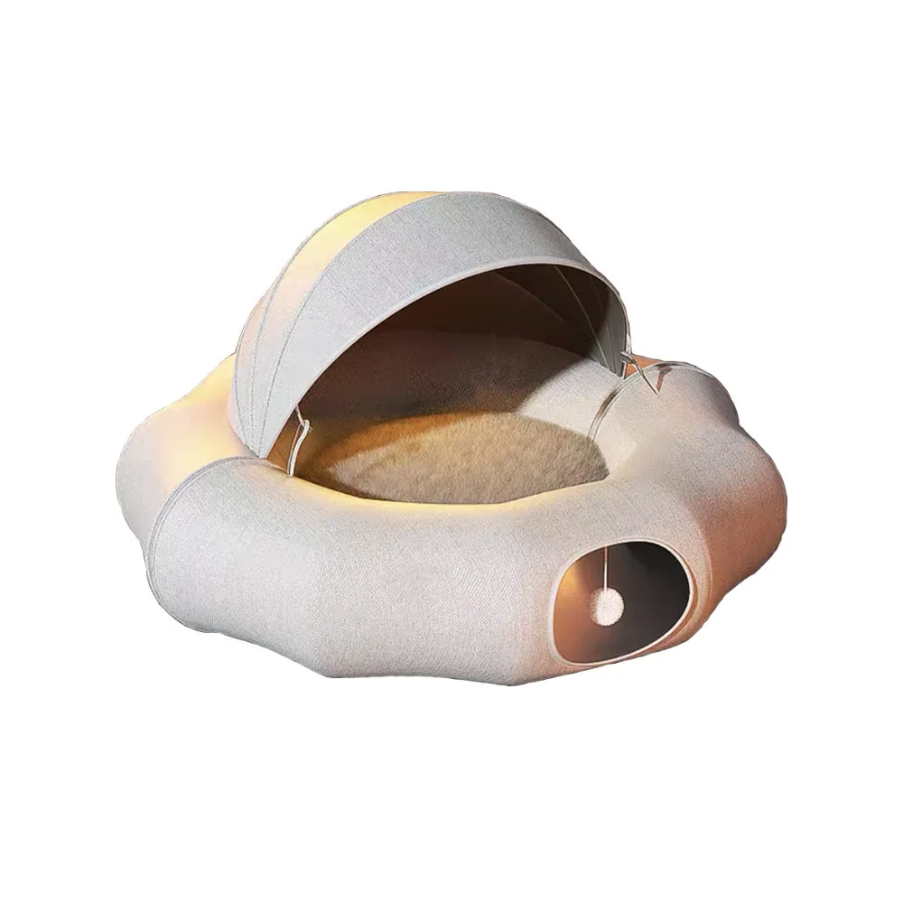New Design 3-in-1 Cat Tunnel Bed with Foldable Play Tunnel, Cozy Sleeping Nest and Sun Canopy for Indoor Cat Entertainment
